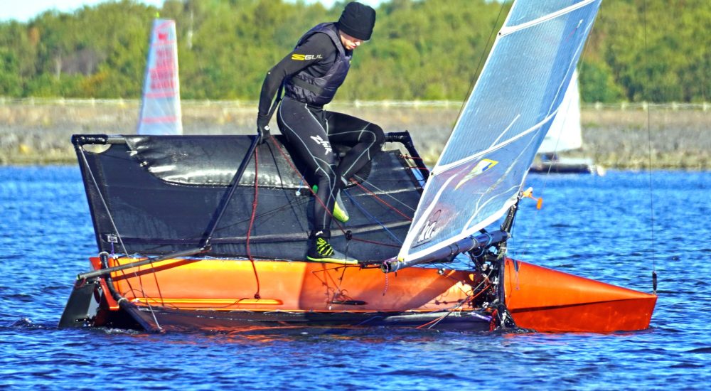 The International Moth class is a “development” dinghy where the rules around hull design allow for a huge variety of shapes and configurations, with a limited set of rules defining hull length, width and concavities and a maximum measured sail area, and no minimum weight limit.